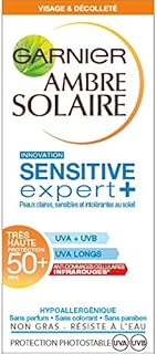 Garnier - Ambre Solaire - Sensitive Expert+ [UV & Infrarouges] - Crème Protectrice Visage & Décolleté FPS 50+ - Peaux sensibles - Protection solaire très haut indice