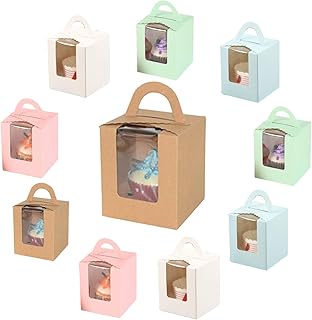10Pièces Boîtes à Cupcake, Boîtes à Gâteaux Avec Fenêtre en PET Transparente et Poignée, Muffin, Dessert et Pâtisserie - Emballage à Emporter Boite, Boîte D'Emballage Cupcake, Coffret Cadeau Dessert