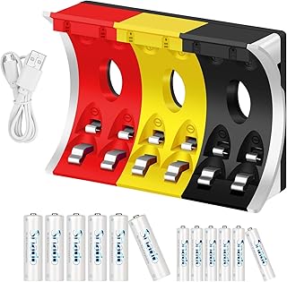Snado 600mAh Ni-MH AA Rechargeable Batteries (6 Pack) and AAA Batteries (6 Pack) and Rechargeable AA AAA Battery Charger (1*Charger +6*AAA+6*AA)