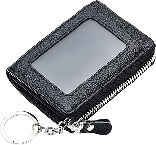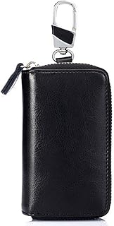 Etuis Porte-clés en Cuir Véritable Porte-Monnaie Petit avec Zip Pochette à clés avec Anneau de Voiture pour Homme Femme Unisexe (Noir)