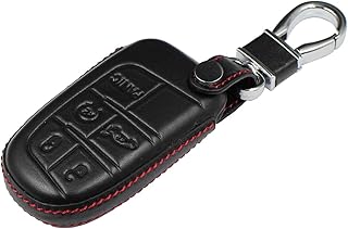 M.JVisun Étui de protection en cuir véritable pour clés de voiture Jeep/Dodge/Chrysler/Fiat avec porte-clés – Cuir – Noir