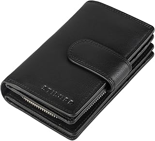 Tilda' Portefeuille Femme RFID Blocage Cuir Porte-Monnaie Vintage Étui pour Cartes Wallet Bourse avec Fermeture Éclair Porte Cartes Cuir véritable, Couleur:Noir