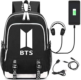 Meridiaga KPOP Bangtan Boys BTS Sac à dos décontracté pour ordinateur portable Sac d'école Sac d'école avec port de charge USB