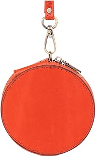 Mini Portefeuille en Cuir Vintage Porte-Monnaie Sac à Main Rond Fermeture éclair Sac de Poche Mignon Petit Sac à Main avec dragonne (Orange)