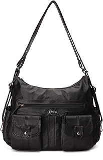 Sac a Main Femmes Bandoulière Cuir Souple Portés Main épaule Hobo Sacs Besace Femme Fermeture éclair Tendance Mode Rouge (BLACK B)