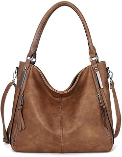 Sac a Main Femmes Bandoulière Cuir Souple Portés Main épaule Hobo Sacs Besace Femme Fermeture éclair Tendance Mode Rouge (brown)