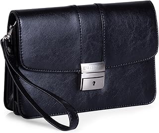 Porte-Documents à Main. Portefolio avec Fermeture à Boucle et Serrure à clés. 4 Compartiments, 2 Ouverts et 2 à Fermeture éclair. Anse à Main T50085, Color Noir